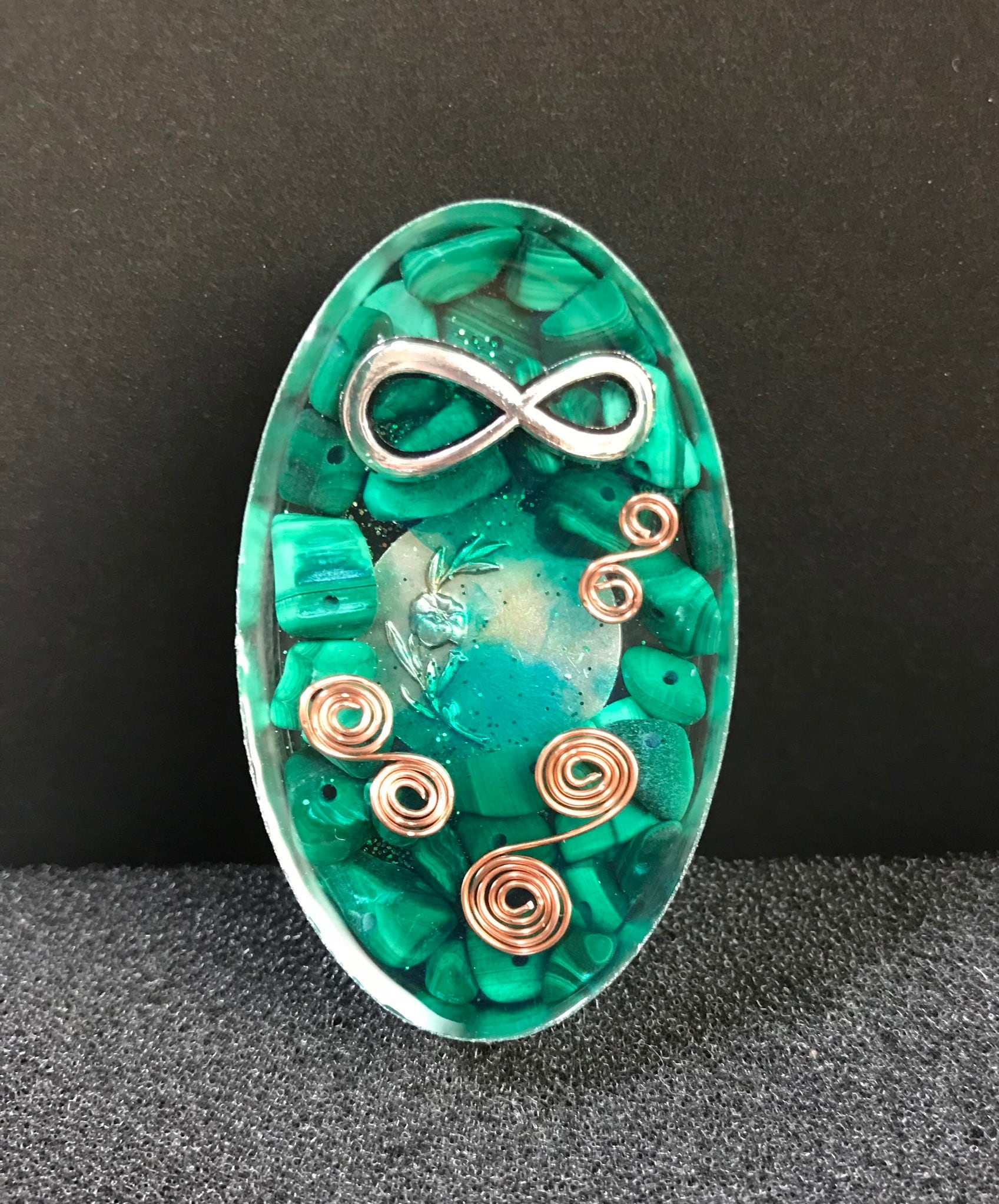 邪気払いの石としてもとても強い力を持つマラカイトですが、研磨したマラカイトの面に目のような模様が浮かぶことと非常に大きな関わりがあります。